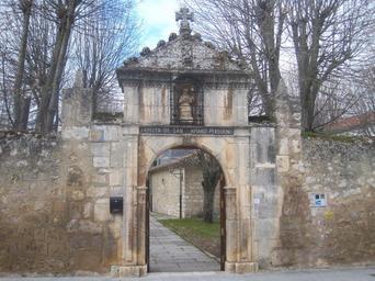 Keywords: burgos spain wall stone doorway arch arched nature outside church architecture old historical trees plants