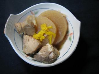 Keywords: Buri Daikon.jpg ぶり大根 Buri Daikon Japanese dish Photo taken by DoWhile / Image created by DoWhile 2006-12-25 DoWhile PD Daikon Buri fish Vegetable-based food of Japan Nimono Radish-based food Cuisine of Toyama prefecture