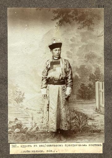 | Keywords: Buriat traditional festive clothes.jpg en A Buriat in the traditional festive clothes ru Бу ятский мужской п аздничный костюм http //hdl loc gov/loc ndlpcoop/mtfxph eet0007 Novosibirsk State Museum of Regional History and Folk Life 1890-th PD-old Buryat people |