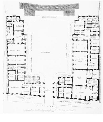| Keywords: Burlington House - Learned societies rooms ground floor plan dated 1871.jpg An 1871 plan of the ground floor of the rooms used by the learned societies at Burlington House London PD-old Floor plans of office buildings Burlington House in art Royal Society when at Burlington House |