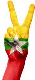 Keywords: burma flag hand national pride peace victory asia burmese myanmar symbol sign patriotic patriotism