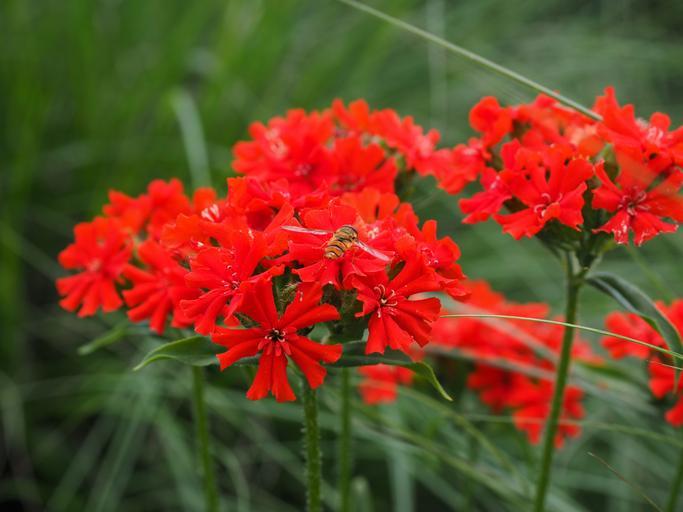 Keywords: burning love flower blossom bloom red lychnis chalcedonica scarlet red campion maltese cross jerusalem cross carnation family caryophyllaceae