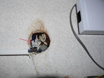 | Keywords: Burnt terminals.JPG en Burnt screw terminal As you can see workers with certificate also can make mistakes What was the mistake -Previous qualified specialist had connected old aluminium cable to new copper cable inside screw terminals After washing machine worked for six months with this connection a burning smell became evident inside the apartment When the apartment owner called me I hadn't seen such a method of wiring What was the reason -There was fresh spackling paste and paint in the stairs but the electrician didn't want to break into the freshly filled walls to put a new cable He left old the aluminium cable between the distribution board and junction box inside the apartment own Dmitry G 2009-09-24 How I solved that problem Step 1 thumb left thumb <br clear all> It was quite a dangerous operation I didn't want to break through the wall in the stairs by drilling too long a hole ~30cm between the apartment and distribution board When my drill bit got to 25cm I was sweating cause I was fearful of contacting the phase wires with my drill bit It took me about 2 hours to drill the last 5 cm and I was sweating the entire time Fortunately the hole was drilled correctly and no under voltage wires were caught by my drill bit <br clear all> Step 2 thumb left thumb <br clear all> After installing fuse box I connected the phase wire into the main circuit breaker and switched the electricity on It's working Improper electrical wiring Internal junction boxes Burned objects |