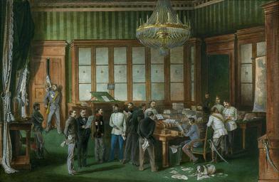 | Keywords: Büro des Prinzen Schwarzenberg in Mailand 1850.jpg de Das Büro des Karl Fürst zu Schwarzenberg Statthalter und Militärgouverneur von Mailand im Palazzo del Governo in Mailand Aquarell 34 x 51 cm siehe auch http //alo uibk ac at/webinterface/library/ALO-BOOK_V01 objid 11781 page 95 zoom 3 ocr Biographie des Fürsten Karl Borromäus Philipp Fürst zu Schwarzenberg 1802 “1858 http //www bassenge com/ 1850 Eugen Adam PD-old Karl II zu Schwarzenberg Offices in art 1850 paintings History of Lombardy History of Milan Archives in Italy Maps in art Chandeliers in Italy Candle chandeliers in art People with dogs in art Watercolor paintings of people Images from Galerie Bassenge Eugen Adam |