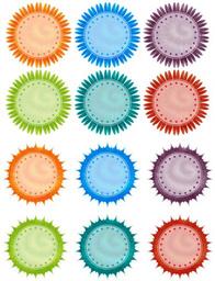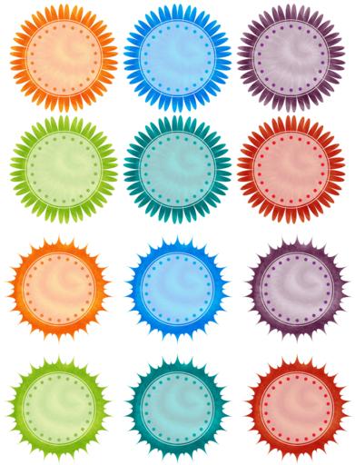 Keywords: burst badge button icon placeholder circle texture vintage flower sun daisy rough jewel tone watercolor scrapbooking orange blue plum lime green teal red open coming soon sale now save win vote