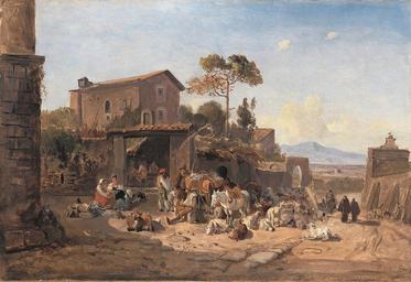 | Keywords: Bürzel, Heinrich - Trattoria vor der Porta San Sebastiano vor Rom - Neue Pinakothek, Munic.jpg Artwork Creator Johann Heinrich Bürkel ca 1830 1832 Oil paper canvas size cm 41 59 5 Neue Pinakothek 11a http //www pinakothek de/heinrich-buerkel/trattoria-bei-der-porta-san-sebastiano-vor-rom Bayerische Staatsgemäldesammlungen object history credit line accession number Inv Nr 8610 unknown PD-old-100 DEFAULTSORT Bürkel Trattoria vor der Porta San Sebastiano Heinrich Bürkel German paintings in the Neue Pinakothek Oil paintings of cattle Oil paintings of horses Paintings of men with horses Paintings of people with cattle Paintings of white horses Porta San Sebastiano Rome - external side 1830 Paintings of Rome 19th-century paintings of horses 1830s paintings from Germany |