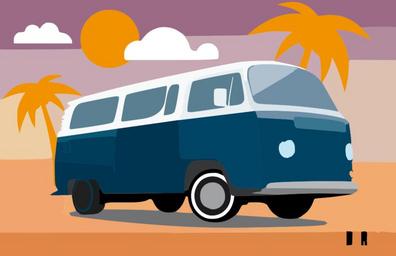 Keywords: bus transporter volkswagen safari blue white palms sun vw bus camper vacation journey