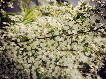 Keywords: bush flowers white beetle ladybug spring nature plant flowering shrub garden close
