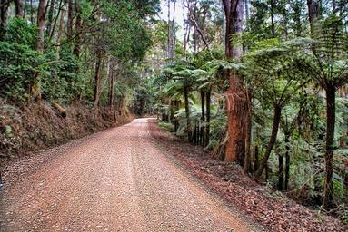 Keywords: bushland road dirt road ferns