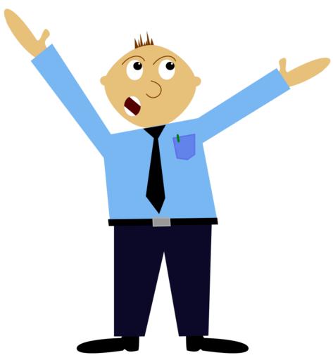 Keywords: businessman police security officer office suit exclamation arms spread gesture gesticulation shouting