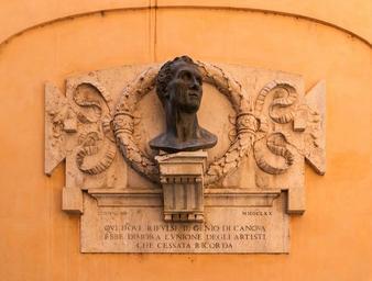 | Keywords: Buste Canova, studio via delle Colonnette, Rome, Italie.jpg fr Buste de Canova au mur de son atelier via delle Colonnette Rome Italie en Bust to Antonio Canova on a wall of his workshop via delle Colonnette Rome Italy 1870-01-01 2013-08-24 for photograph own Jebulon 41 907423 12 477001 cc-zero Uploaded with UploadWizard Studio Canova Rome 19th-century bronzes in Italy Portraits of Antonio Canova Quality images by Jebulon QualityImage | ||||