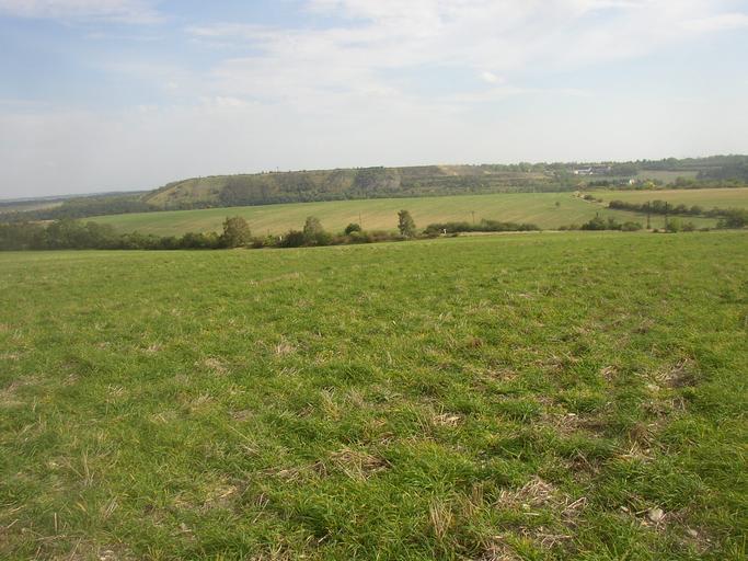 | Keywords: Bustehradska halda CZ from NW 029.jpg Buštěhradská halda okres Kladno Celkový pohled od severozápadu z pole na návrší mezi Středočeským pivovarem a Cvrčovicemi Terasy v pravé třetině haldy přibližně naznačují rozsah částí stále používané ke skládkování Vpravo od haldy samota Vrapický Dvůr pod ní poslední domy vlastních Vrapic Pás zeleně přetínající popředí obrazu skrývá železniční trať 093 Kralupy nad Vltavou - Kladno vpravo šikmo přes pole běží cesta ze Cvrčovic do Vrapic Buštěhrad slag heap composed of waste tailings from local steelworks and another industrial waste near city of Kladno Czech Republic A view from the northwest from a field between defunct Central Bohemian Brewery and village of Cvrčovice Approximate extent of still active part is given by terraces in the right 50 10 32 N 14 09 54 E type landmark_region CZ +-100 m Buštěhrad slag heap |