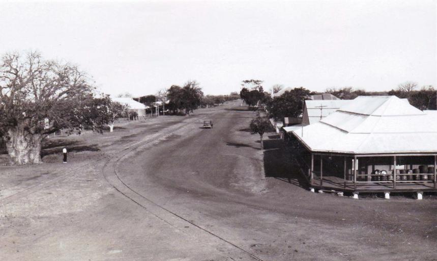 | Keywords: 1921 western australia westernaustralia wyndham road street car house shop hotel outdoor vehicle Looks like a hotel on the right with all of the beer kegs on the verandah and the railway line goes down the main street. Looks like a hotel on the right with all of the beer kegs on the verandah and the railway line goes down the main street. |