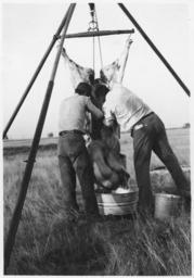 | Keywords: Butchering a buffalo - NARA - 285515.tif Scope and content Skinning hanging the carcass staking out the hide and drying the meat General notes 285515 Local identifier Department of the Interior Bureau of Indian Affairs Pine Ridge Agency 09/17/1947 - 09/09/9999 NARA's Central Plains Region Kansas City NREA 400 West Pershing Road Kansas City MO 64108 other date ~ 1940 Record group Record Group 75 Records of the Bureau of Indian Affairs 1793 - 1999 Record group ARC 404 Education Decimal Files compiled 1937 - 1959 Series ARC 285492 File unit File unit ARC Variant control numbers NAIL Control Number NRE-75-PRSERIES175-1024 yes Other versions <gallery> File Butchering_a_buffalo_-_NARA_-_285515 tif tif File Butchering_a_buffalo_-_NARA_-_285515 jpg jpg </gallery> NARA-cooperation PD-USGov NARA TIF images with categorized JPGs South Dakota |