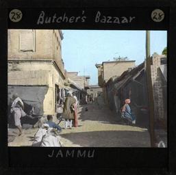| Keywords: Butcher's Bazaar, Jammu, ca.1875-ca.1940 (imp-cswc-GB-237-CSWC47-LS10-028).jpg en <br> Butcher's Bazaar Jammu ca 1875-ca 1940 Photograph of a butcher's bazaar in the city of Jammu A bazaar is a street of shops where good and services are exchanged A number of small shops or market stalls can be seen on either side of a street ; This belongs to a series of Church of Scotland Foreign Missions Committee lantern slides relating to Jammu City which is also known as the City of Temples A mission station occupied by Church of Scotland missionaries was founded here in the late 19th/early 20th century Jammu is also one of the three administrative divisions within Jammu and Kashmir the northernmost state in India Photographer Unknown Filename imp-cswc-GB-237-CSWC47-LS10-028 tif Coverage date 1875/1940 Part of collection International Mission Photography Archive ca 1860-ca 1960 Geographic subject region Jammu and Kashmir Type images Part of subcollection Photographs from the Centre for the Study of World Christianity University of Edinburgh U K ca 1900-ca 1940s Repository name Centre for the Study of World Christianity Archival file impaunpub_Volume7/1744 url Repository address The University of Edinburgh School of Divinity New College Mound Place Edinburgh EH1 2LX United Kingdom Geographic subject country India Format aacr2 1 lantern slide 8 x 8 cm Geographic subject continent Asia Rights Contact the repository for details Part of series In the Temple City of Jammu LS10 Repository email divinity-CSWC ed ac uk Subject lcsh Keyword Marketplaces; Local foods Date created 1875/1940 Publisher of the digital version University of Southern California Libraries Subject aat genre exterior views Format aat lantern slides Legacy record ID impa-m69264 Access conditions http //www ed ac uk/schools-departments/divinity/research/centres/world-christianity/collections-resources File GB 237 CSWC47/LS10/28 1875/1940 author http //digitallibrary usc edu/cdm/ref/collection/p15799coll123/id/64862 PD-old-70-1923 Magic lantern images Images from USC Digital Library uploaded by Fæ International Mission Photography Archive ca 1860-ca 1960 Jammu |
