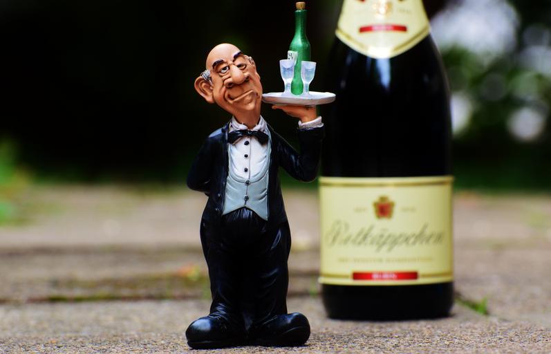 Keywords: butler tray beverages wine champagne operation gastronomy man funny upper restaurant waiter bar pub weinstube cozy control bottle