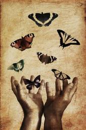 Keywords: butterflies hands butterfly nature insect summer spring design fly decorative love freedom animal wings people colorful insects release flying bugs