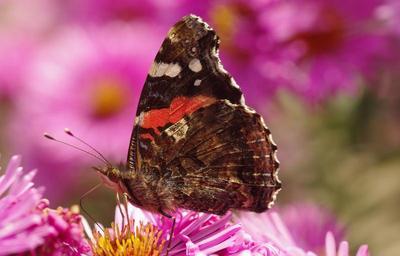 Keywords: butterfly blossom bloom spring close macro pink flower aster