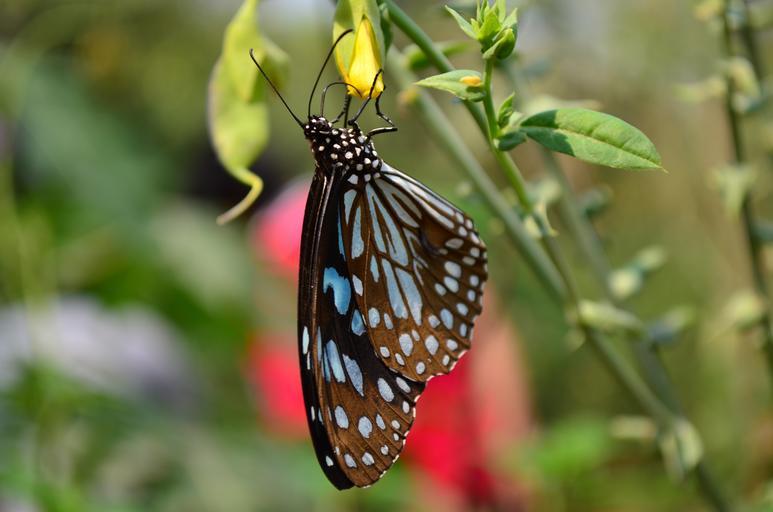Keywords: butterfly blue tiger insect fauna sitting flower india