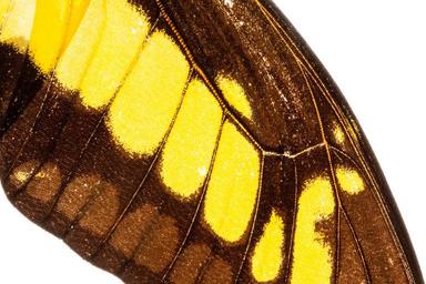 Keywords: butterfly exotic south america amazon iridescent scale wing scales brown yellow insect wing color macro structure background fund