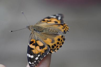 Keywords: butterfly finger hand insect nature landed close butterflies rest small spreading wings animal sit wing fauna painted lady edelfalter child child's hand flight insect