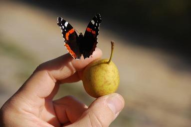 Keywords: butterfly fruit hand