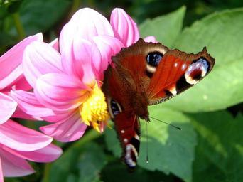 Keywords: butterfly insect close flower dahlia flowers pink nature plant beautiful