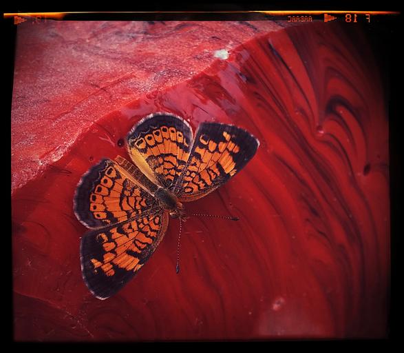 Keywords: butterfly insect hot springs arkansas glass scrap orange rock shop stripes animal nature flight alight striped horizontal curiosity small