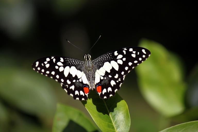 Keywords: butterfly insects gardens plants green leaves floa butterflies white black wings spots dots patterns bugs gardening leaf sitting still life wildlife