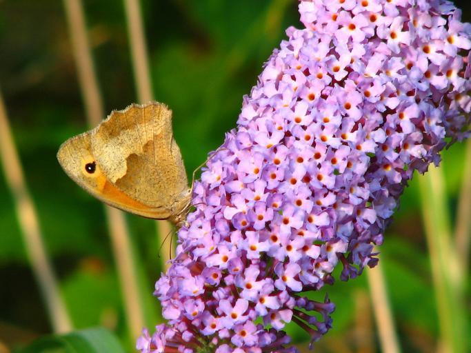 Keywords: butterfly lilac flower insect wing close brown orange point purple