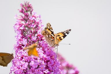 Keywords: butterfly lilac summer lilac pink pink flower blossom bloom animal insect flight insect wild life nature wing landed close text freedom negative space wildlife photography garden plant garden in the garden painted lady vanessa cardui edelfalter summer