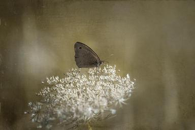 Keywords: butterfly meadow brown blossom bloom white white blossom nature animal insect flight insect plant edelfalter landed arrived close text freedom negative space