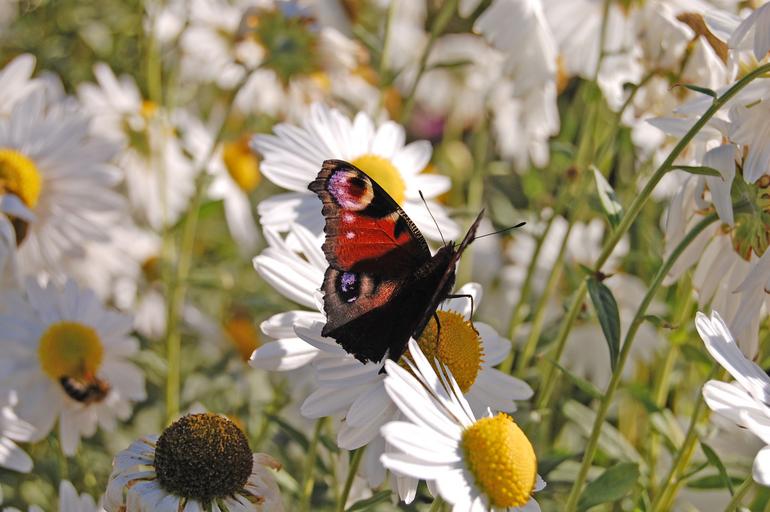 Keywords: butterfly nature flower red white yellow insect nectar