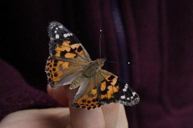 Keywords: butterfly painted lady close edelfalter insect summer animal fauna butterflies wing child's hand hand protect protection environmental protection child keep leave blank careful carefully freedom responsibility macro