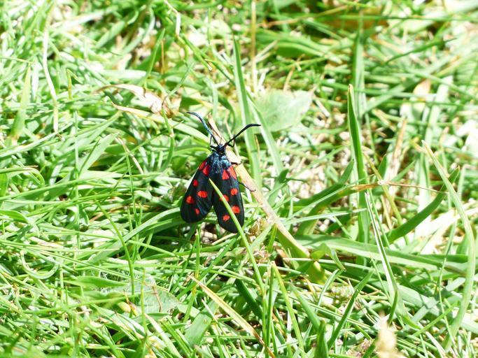 Keywords: butterfly red black spotted six moth zygaena filipendulae blood moth burnet zygaenidae red six spot burnet meadow grass nature insect flight insect