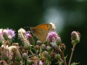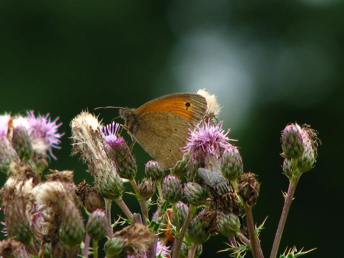Keywords: butterfly thistle flower insect wing close probe brown orange pink