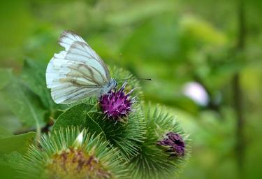 Keywords: butterfly white ling thistle meadow summer green nectar cirsium vulgare wild plant prickly