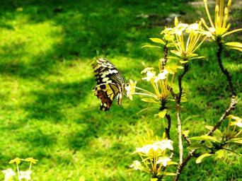 Keywords: butterfly yellow black flowers ashoka plants grass green