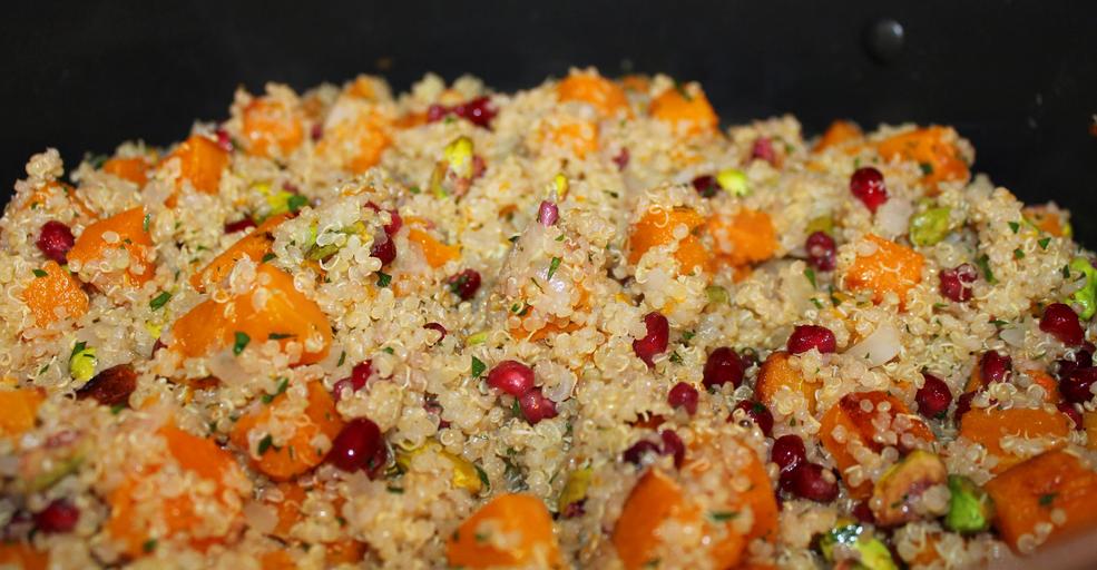 Keywords: butternut squash pomegranate pistachios food dinner meal vegetarian cuisine cooking tasty dish menu eat vegetables healthy lunch nutrition grain