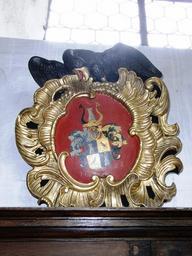 | Keywords: Buxach Dreieinigkeitskirche Wappen Wachter 1758.jpg Eines der vielen Wappen der Kirchenspender in der Dreieinigkeitskirche Buxach aus dem 18 Jahrhundert; Wappen Wachter mit Jahreszahl 1758 own 2008-06-14 User Memmingen Dreieinigkeitskirche Buxach Paintings of coats of arms Coats of arms of Wachter family Coats of arms in Memmingen 1758 paintings |