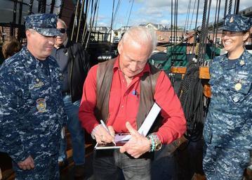 | Keywords: Buzz Aldrin autographs a photo. (10405533815).jpg CHARLESTOWN Mass Oct 18 2013 Retired astronaut Buzz Aldrin autographs a photo for Cmdr Sean Kearns the 73rd commanding officer of USS Constitution left and Command Senior Chief Nancy Estrada during a tour of USS Constitution Aldrin the second person to walk on the moon was the lunar module pilot on the Apollo 11 moon landing mission on July 21 1969 U S Navy photo by Mass Communication Specialist 2nd Class Peter D Melkus/Released 131018-N-SU274-047 http //www flickr com/photos/usnavy/10405533815/ Buzz Aldrin autographs a photo 2013-10-18 10 47 http //www flickr com/people/56594044 N06 Official U S Navy Page from United States of America MC2 Peter D Melkus/U S Navy Attribution License IPTC Caption-Abstract U S Navy photo PD-USGov-Military-Navy Official U S Navy Imagery http //flickr com/photos/56594044 N06/10405533815 2014-04-03 12 53 19 cc-by-2 0 Files uploaded by Russavia People giving autographs Aldrin Buzz Buzz Aldrin 201310181047 Three people |