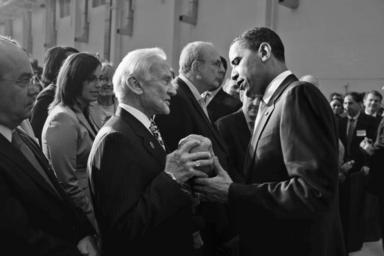 | Keywords: Buzz Aldrin and Barack Obama.jpg en Gemini 12 and Apollo 11 astronaut Buzz Aldrin holding a model of the Martian moon Phobos and United States President Barack Obama at the Operations and Checkout Building at Kennedy Space Center in Cape Canaveral Florida on Thursday 15 April 2010 Obama visited the Center to speak about the future of American human space flight 2010-04-15 15 26 http //s3 amazonaws com/images newscred com/02093c32e0bf9e8faa741aabccd4121a Creator Pete Souza PD-USGov DEFAULTSORT 201004151526 Barack Obama in 2010 Buzz Aldrin Operations and Checkout Building 2010 in Florida Photographs by Pete Souza Uploaded by O'Dea Taken with Canon EOS 5D Mark II Personality rights |