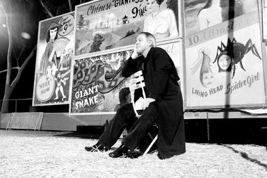 Keywords: Bw 2443.jpg en Mark Edward waiting to perform as a magician at Los Angeles's Haunted Hayride own Sgerbic 2010-10-15 Mark Edward Psychics