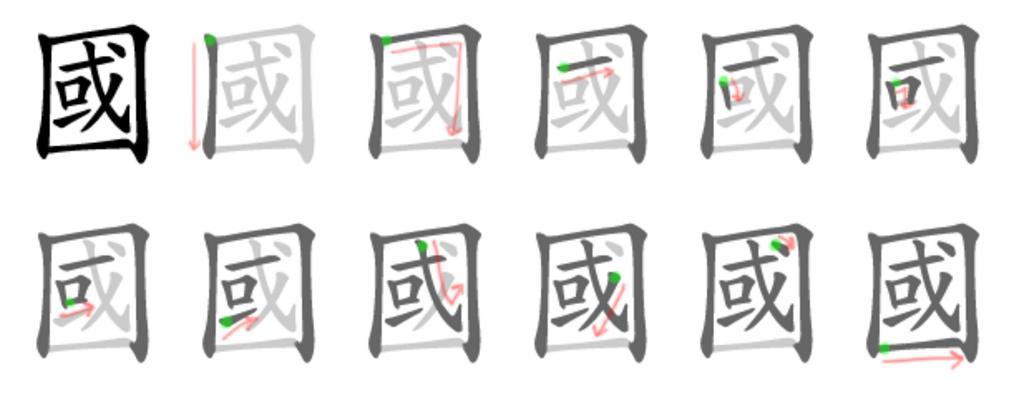Keywords: 國-bw.png å ‹ GUÓ n Country state nation Stroke count 11 Traditional stroke order Kai Shu Style 2005-09-01 own assumed Kamlung~commonswiki Bw png stroke order images å ‹