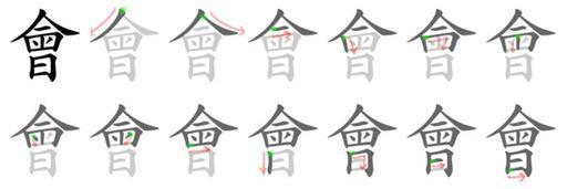 Keywords: 會-bw.png æ ƒ HUÃŒ v I Understand; grasp II Can; able to III Skillful at Stroke count 13 Traditional stroke order Kai Shu style 2005-09-03 own assumed Kamlung~commonswiki æ ƒ