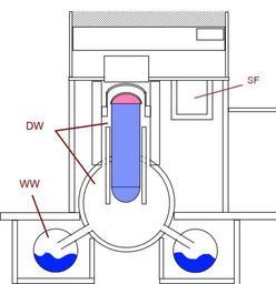 | Keywords: BWR Mark I Containment sketch.png en Rough sketch of a typical Boiling water reactor BWR Mark I Concrete Containment with Steel Torus as used in the BWR/1 BWR/2 BWR/3 and some BWR/4 model reactors DW Drywell WW Wetwell SF Spent fuel pool de Schema eines Siedewasserreaktors SWR der Baulinie Mark I mit Sicherheitsbehälter aus Beton und torusförmiger Kondensationskammer aus Stahl wie sie auch in Reaktoren der Baulinie SWR/1 SWR/2 SWR/3 und in einigen der Baulinie SWR/4 vorkommen DW Druckkammer WW torusförmige Kondensationskammer SF Abklingbecken fr Diagrame/coupe d'un réacteur à eau bouillante REB typique de type Mark I à enceinte de confinement en béton avec tore d'acier sous-jacent tel qu'utilisé dans les réacteurs de type REB/1 REB/2 REB/3 et certains REB/4 DW enceinte sèche WW enceinte humide de suppression de pression de forme torique SF piscine de combustible usé Sketched in Paint net using 826 x 852 canvas inspired by Page 15 pdf 40 Containment Integrity Research at Sandia National Laboratories - An Overview Manuscript completed March 2006 Published July 2006 id NUREG/CR-6906 and SAND2006-2274P http //www nrc gov/reading-rm/doc-collections/nuregs/contract/cr6906/cr6906 pdf - Prepared by Sandia National Laboratories for the U S Nuclear Regulatory Commission Job Code Y6757 The two diagrams on the same page are labeled Figure 5 Typical BWR Mark I Concrete Containment with Steel Torus User 84user 2011-03-14 <gallery>File BWR Mark I Containment diagram png original diagram from page 15 of the source File BWR Mark I Containment sketch with downcomers png sketch with downcomers </gallery> ImageNote 2 329 273 96 321 826 852 2 reactor pressure vessel ImageNoteEnd 2 ImageNote 3 314 382 16 231 826 852 2 Cylindrical biological shield ImageNoteEnd 3 ImageNote 4 332 277 92 34 826 852 2 Top head assembly ImageNoteEnd 4 ImageNote 6 215 94 462 67 826 852 2 Gantry crane ImageNoteEnd 6 ImageNote 7 311 167 135 80 826 852 2 Drywell head and refueling assembly ImageNoteEnd 7 ImageNote 8 233 240 293 518 826 852 2 Inverted lightbulb drywell containment chamber ImageNoteEnd 8 ImageNote 9 208 34 474 199 826 852 2 Upper part of building housing crane and refueling assembly ImageNoteEnd 9 ImageNote 10 92 683 567 138 826 852 2 Wetwell torus holding water for steam suppression ImageNoteEnd 10 Schemata of boiling water reactor |