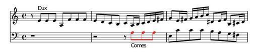 | Keywords: BWV895-Dux-Comes.svg de Dux und Comes von Fuge BWV 895 nach File BWV_895-Dux-Comes JPG Erstellt mit LilyPond Dux and Comes or leader and follower in BWV 895 after File BWV_895-Dux-Comes JPG Made with LilyPond Source Code <pre> \version 2 10 0 << Stimme 1 \clef violin \key c \major \time 4/4 r8 e' Dux e' e' a f' f' f' e' d' c' b c' a16 b c' d' e' fis' g'8 e'16 fis' g' a' b' c dis'8 e'16 fis' b8 cis'16 dis' Stimme 2 \new Staff \clef bass \key c \major \time 4/4 r1 r2 r8 \override NoteHead 'color red \override Stem 'color red \override Beam 'color red a_ Comes a a \override NoteHead 'color black \override Stem 'color black \override Beam 'color black e c' c' c' b a g fis >> </pre> 2012-05-07 own Christian Stroppel SVG Brian Ammon File BWV_895-Dux-Comes JPG cc-zero Uploaded with UploadWizard Harpsichord music by JS Bach Sheet music of Johann Sebastian Bach Fugues |