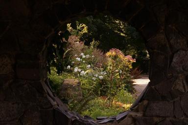 Keywords: by looking wall window flowers stone wall