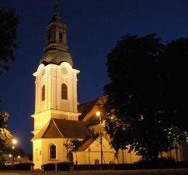 Keywords: Bydgoszcz Kościół św Mikołaja zmierzch a3.jpg pl Kościół św Mikołaja w Bydgoszczy own Pit1233 2008 Saint Nicholas church in Bydgoszcz-Fordon at night