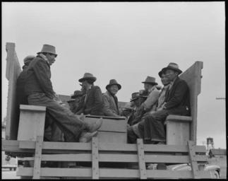| Keywords: Byron, California. Field laborers of Japanese ancestry are returning to the large-scale asparagus r . . . - NARA - 537695.jpg Scope and content The full caption for this photograph reads Byron California Field laborers of Japanese ancestry are returning to the large-scale asparagus ranch after an interview at the Wartime Civil Control Administration station in regard to their evacuation to an Assembly Center which is due in three days General notes 537695 Local identifier 210-G-C362 Department of the Interior War Relocation Authority 02/16/1944 - 06/30/1946 NARA-Author Lange Dorothea 1895-1965 Photographer 1372774 <br /> Still Picture Records Section Special Media Archives Services Division NWCS-S National Archives at College Park 8601 Adelphi Road College Park MD 20740-6001 1942-04-20 Record group Record Group 210 Records of the War Relocation Authority 1941 - 1989 Record group ARC 537 Central Photographic File of the War Relocation Authority compiled 1942 - 1945 Series ARC 536000 File unit File unit ARC Variant control numbers NAIL Control Number NWDNS-210-G-C362 Other versions <gallery> File Byron _California _Field_laborers_of_Japanese_ancestry_are_returning_to_the_large-scale_asparagus_r_ _ _ _-_NARA_-_537695 tif tif File Byron _California _Field_laborers_of_Japanese_ancestry_are_returning_to_the_large-scale_asparagus_r_ _ _ _-_NARA_-_537695 jpg jpg </gallery> NARA-cooperation PD-USGov Dorothea Lange Japanese American internment processing in Byron California |
